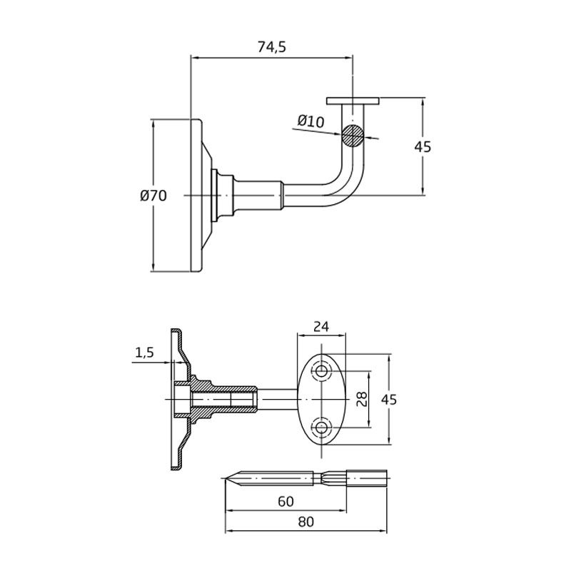 BELSŐÉPÍTÉSZETI ELEMEK KORLÁT TARTOZÉKOK KORLÁTTARTÓ - AMIG 26/19221 KORLÁTTARTÓ EGYENES FOGADÓVAL ANTIK-BRONZ