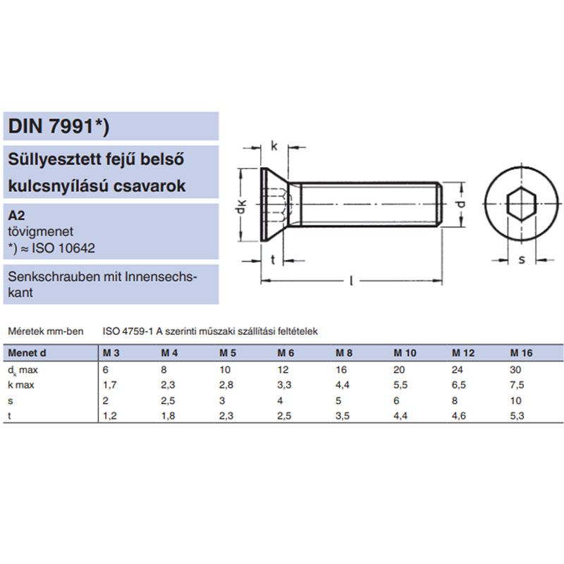 CSAVAR, KÖTŐELEM METRIKUS CSAVAROK BELSŐKULCSNYÍLÁSÚ SÜLLYESZTETT - BK SÜLLYESZTETTFEJŰ M02,5*08 DIN 7991 A2 INOX