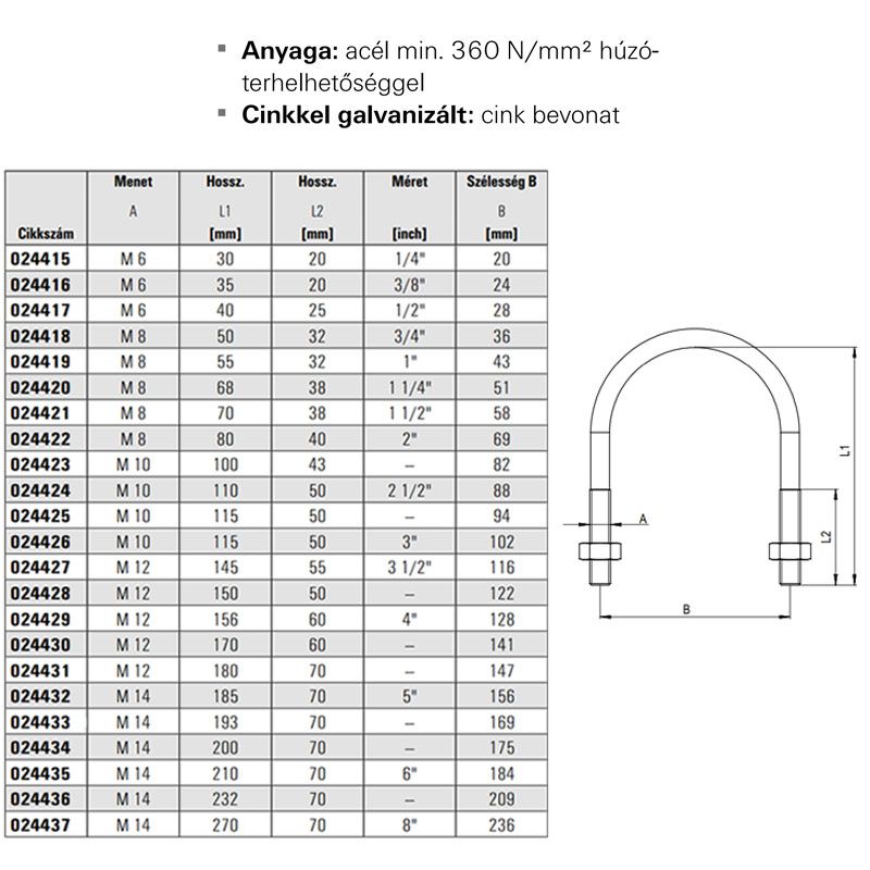 EMELÉSTECHNIKA EMELÉSTECHNIKA TARTOZÉKOK U BILINCS - FISCHER 24429 U BILINCS M12*156*128 4/0col ETR 102-114 HG. (ANYÁVAL)