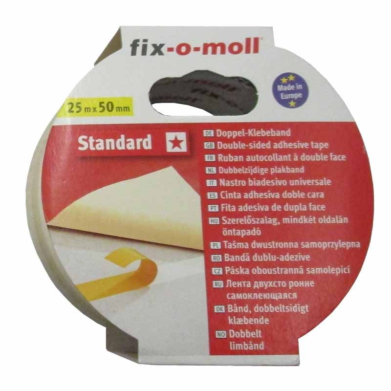 • VEGYI ANYAGOK ÉS SZALAGOK FIX-O-MOLL 3563197 KÉTOLDALAS RAGASZTÓSZALAG 25M*50mm STANDARD SZERELÉSHEZ