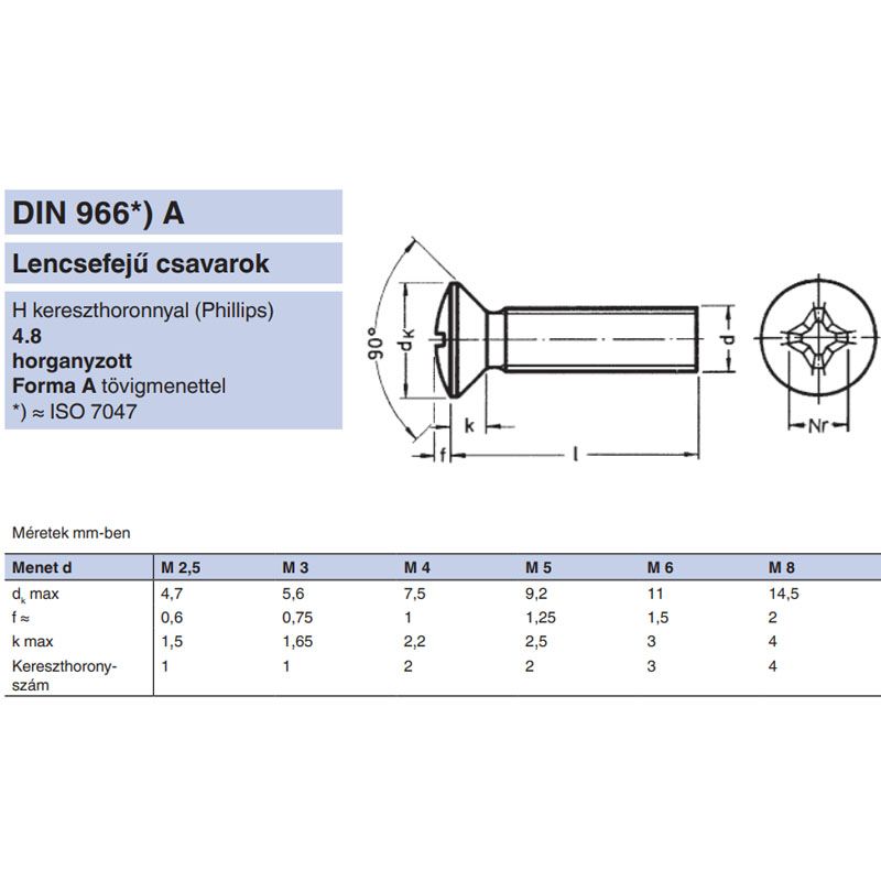 CSAVAR, KÖTŐELEM METRIKUS CSAVAROK LENCSEFEJŰ KERESZTHORNYÚ - LFKH CSAVAR M3*6 DIN 966 HG. PH UTOLSÓ DARABOK IMPORT