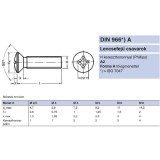 CSAVAR, KÖTŐELEM METRIKUS CSAVAROK LENCSEFEJŰ KERESZTHORNYÚ - LFKH CSAVAR M4*30 M4x30 DIN 966 A2 PH INOX