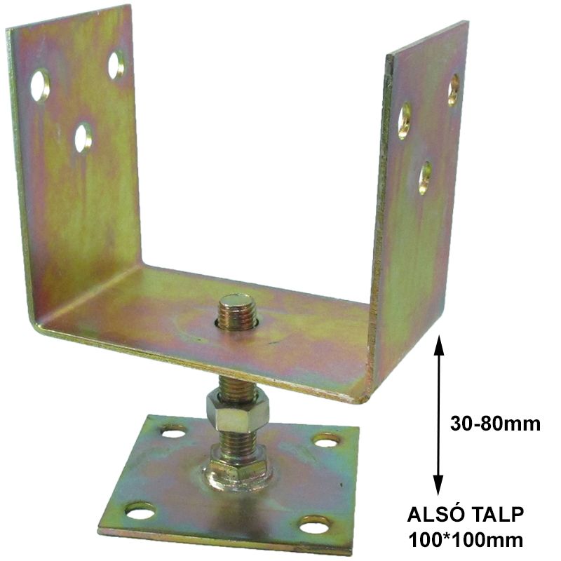 ÉPÜLETVASALAT OSZLOPTARTÓ ELEM TALPAS ÁLLÍTHATÓ - OSZLOPTARTÓ TALPAS U ÁLL. SHG 100*100 M16 MENET FÜGG.60mm-IG MAGYAR