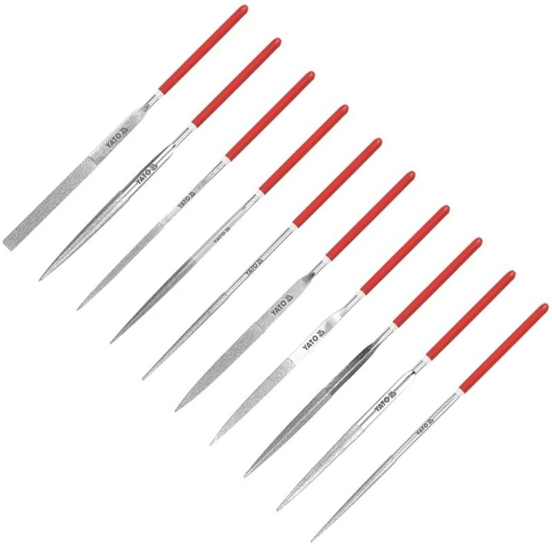 KÉZISZERSZÁM RESZELŐK, FARÁSPOLYOK RESZELŐ KÉSZLET - YATO 6144-6145-6146 TŰRESZELŐ KLT 150/10DB GYÉMÁNT MŰANYAG NYÉLLEL