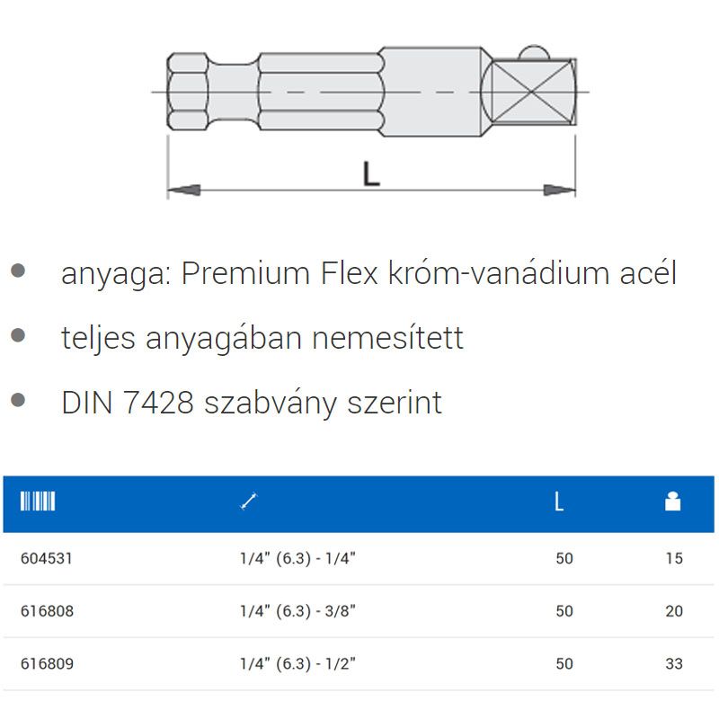 UNIOR 604531 DUGÓKULCS ADAPTER 1/4c- 1/4c 188.10 SZERSZÁM-KULCSOK Kategória KÉZISZERSZÁM